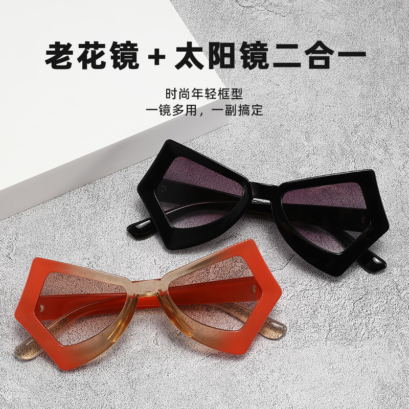ヨーロッパとアメリカの高品質ラージフレームスクエアキャットアイ老眼サングラスクロスボーダーファッション新しい老眼メガネメーカー卸売