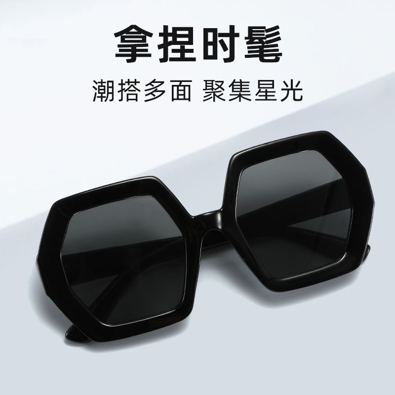 新しいヨーロッパとアメリカンスタイルのポリゴンメタルヒンジサングラス女性のファッショントレンド大きなフレームスクエアフェイスクロスボーダー外国貿易サングラス