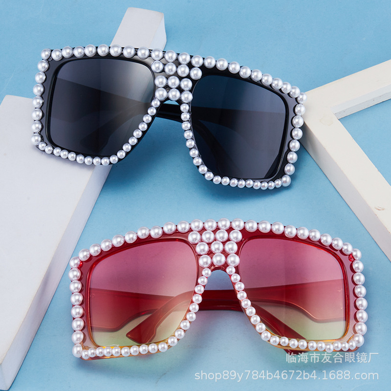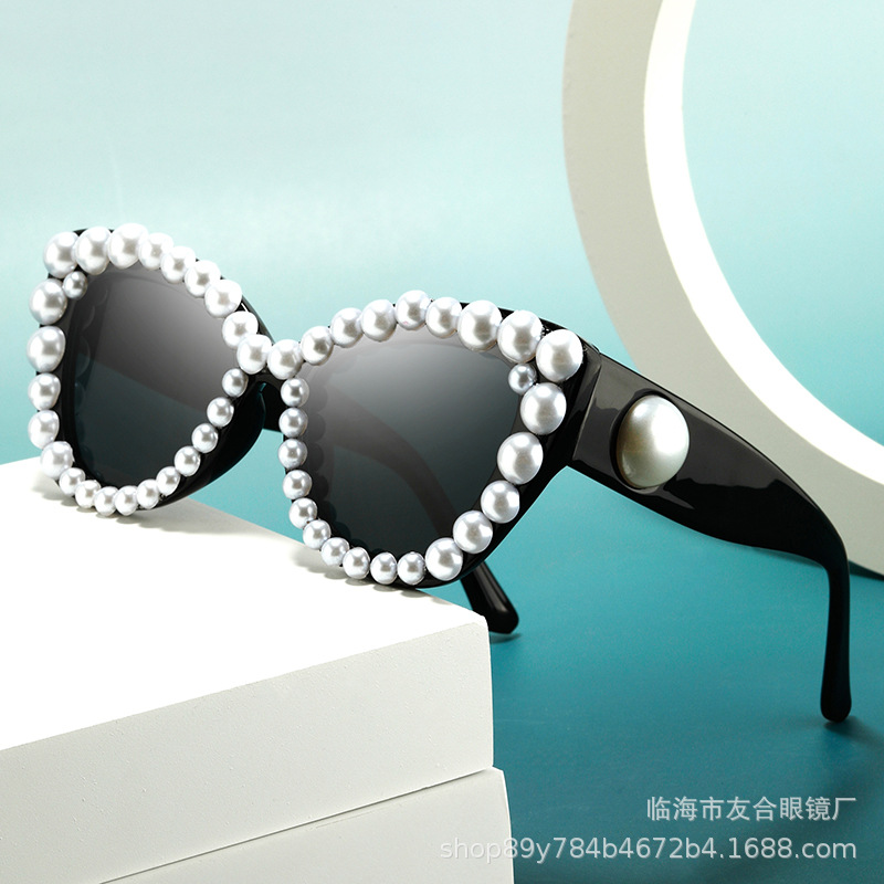 新型のドリル真珠のサングラス欧米の越境ファッションのサングラスの女性の個性の街は眼鏡のメーカーをたたいて卸売りします。