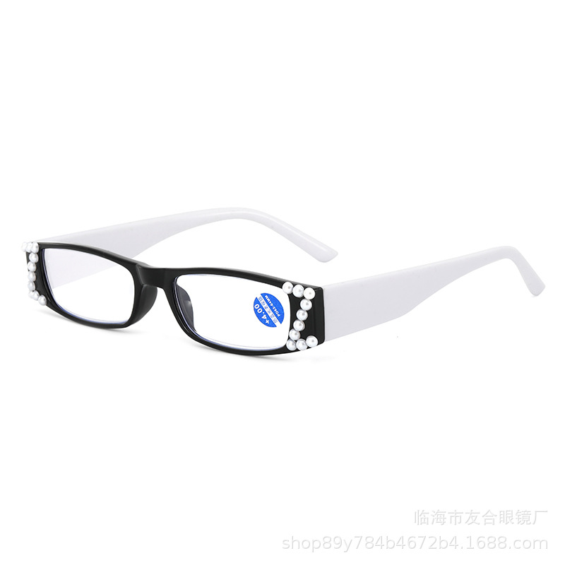 新型のZ形の手はダイヤモンドの真珠の金の小さい四角の枠を入れて青い光の老眼鏡のファッションの潮流の老年の高級なメガネを防ぎます。