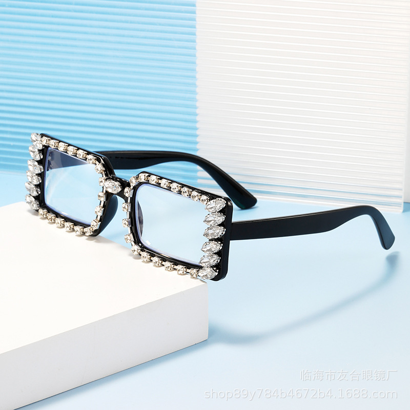 国境を越えた新型欧米の個性的な手にダイヤモンドの枠を入れてブルーライトの老眼鏡のレトロなファッションの潮流の高級なメガネを防ぎます。