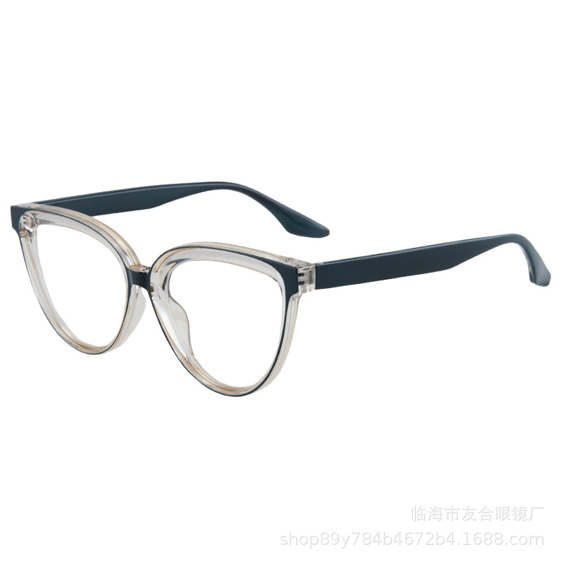 爆発的な個性の猫の目の青い光のメガネの女性は近視のレンズのファッション的なすっぴんの黒色の鏡の枠の平光の鏡を配合することができます。