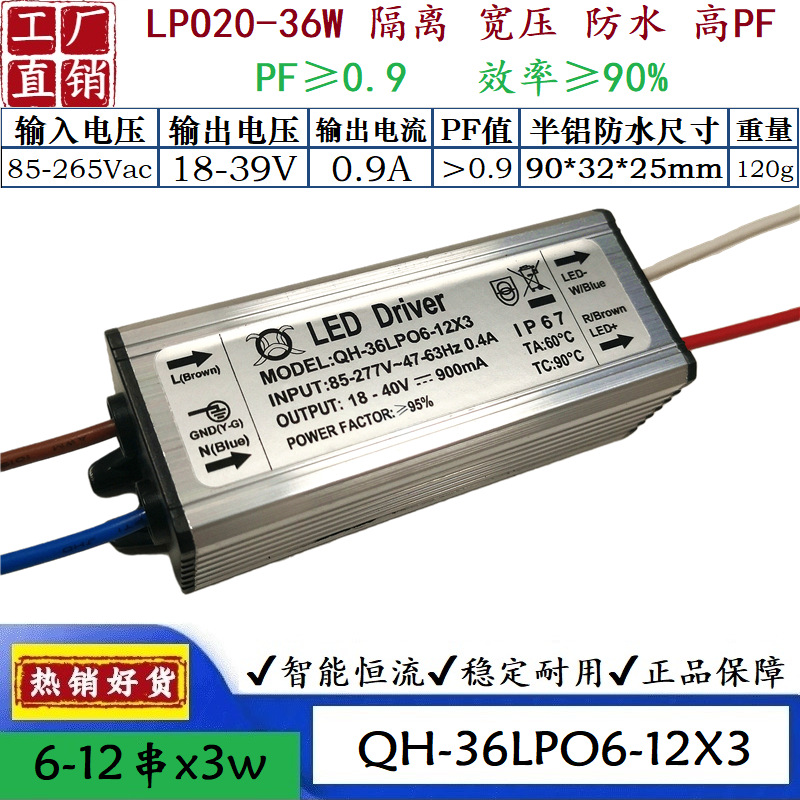 Qh奇翰高PF20W30W36W0.9AQH-36LPO6-12X3LED街灯防水定電流駆動電源