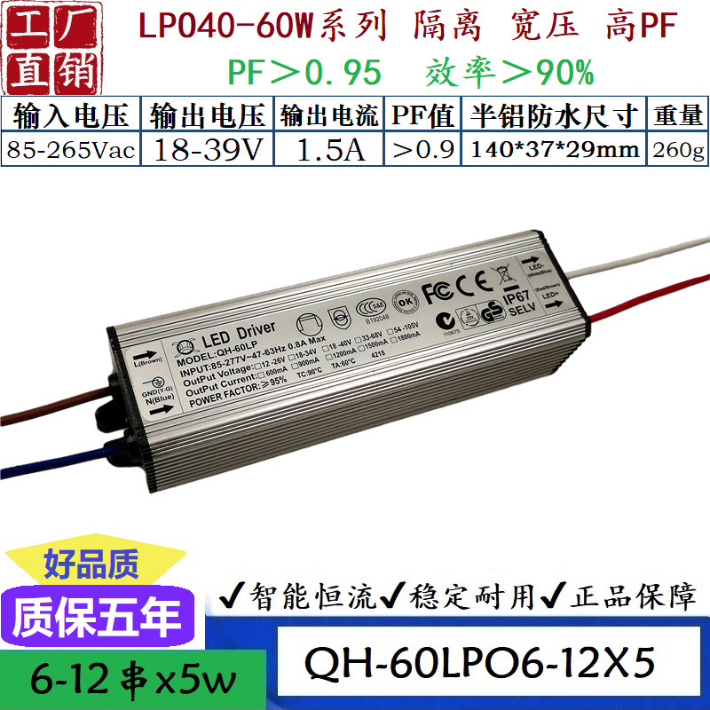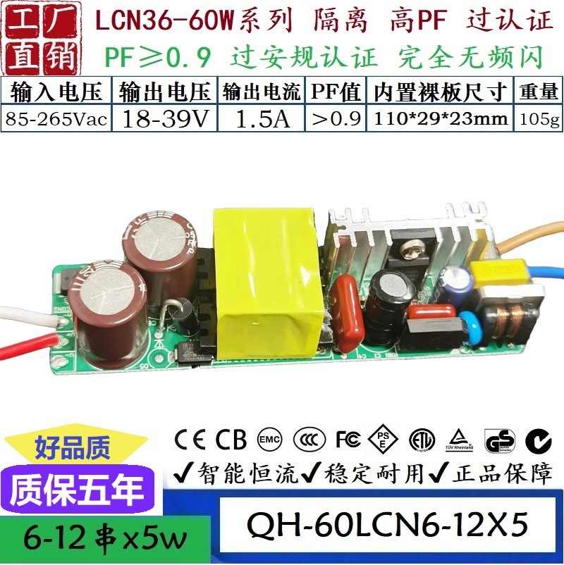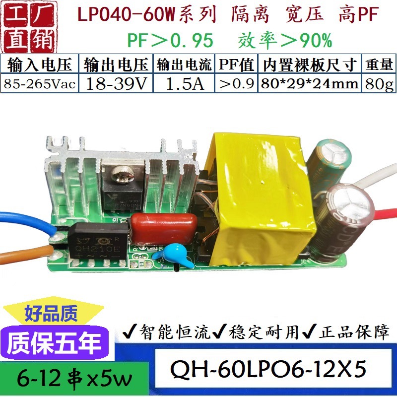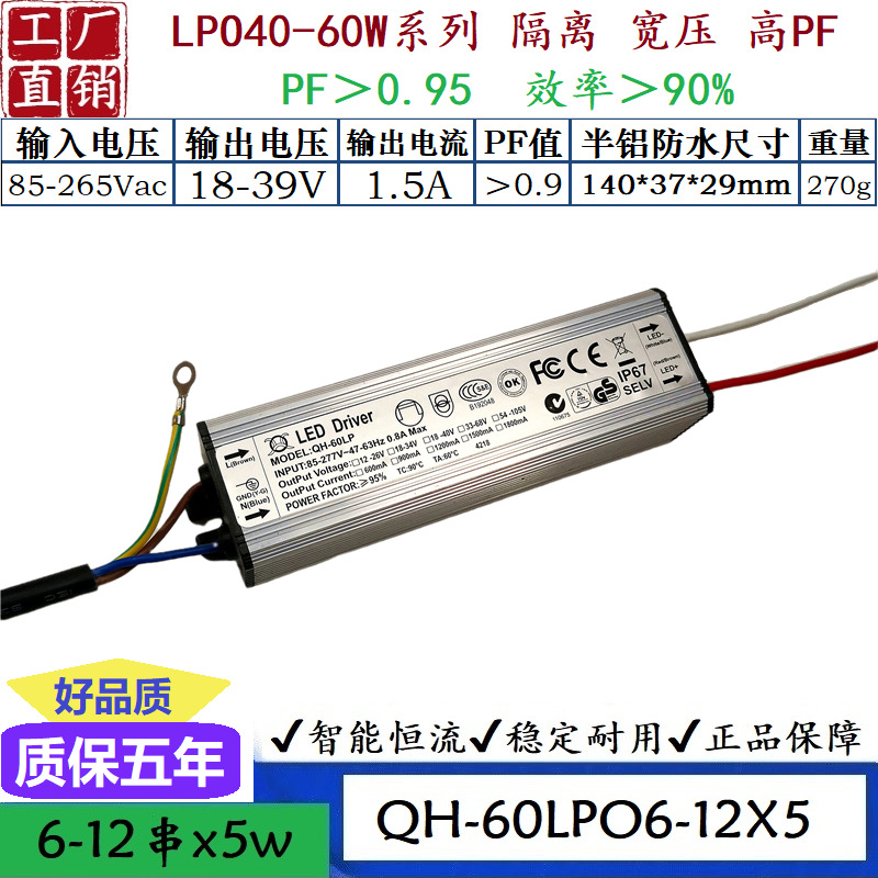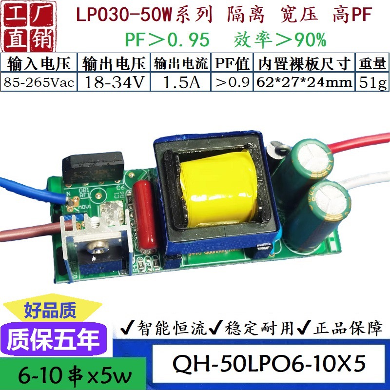 Qh奇翰高pf40w50w1.2a1.5a led電球ランプ広圧隔離定電流駆動電源