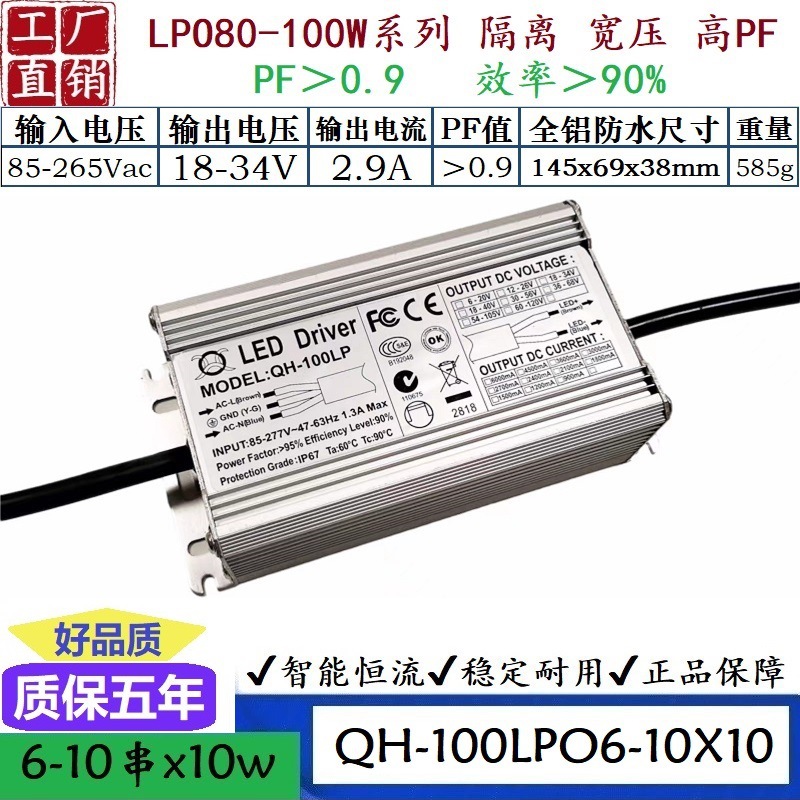 Qh奇翰高pf80w90w100w 2.4a 2.7a 3aled街灯投光灯防水定電流駆動電源