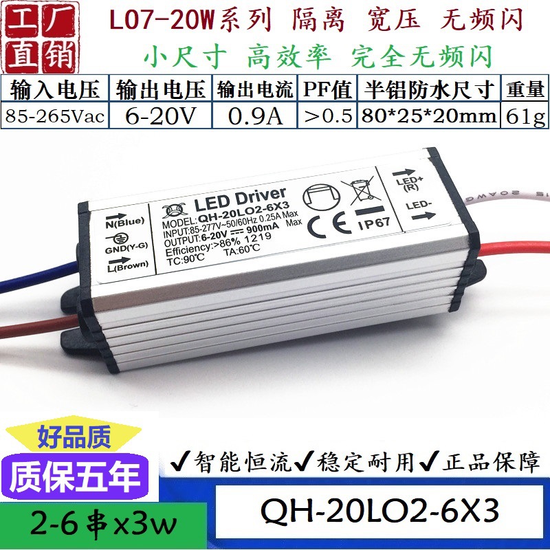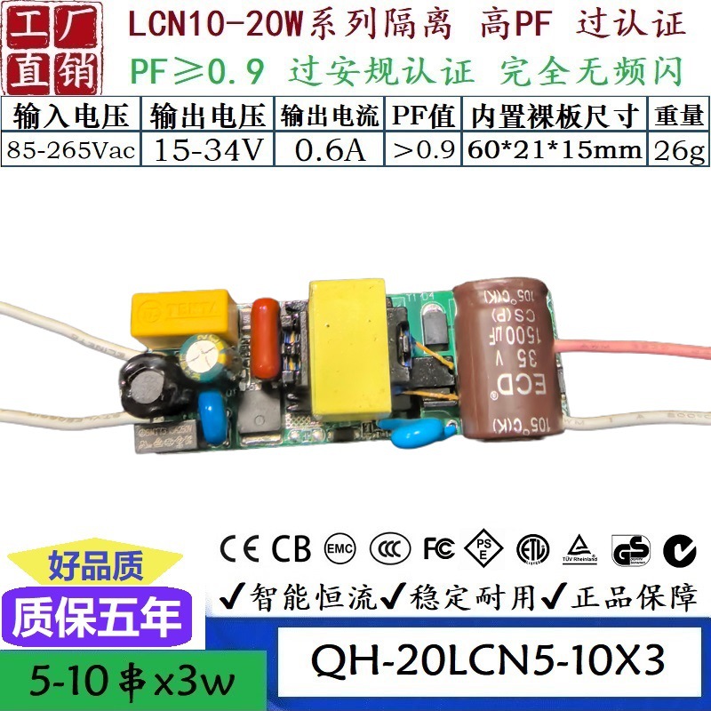 Qh奇翰が認証したストロボなし高pf12w15w18w20w0.3 a0.6aledパーライト駆動電源
