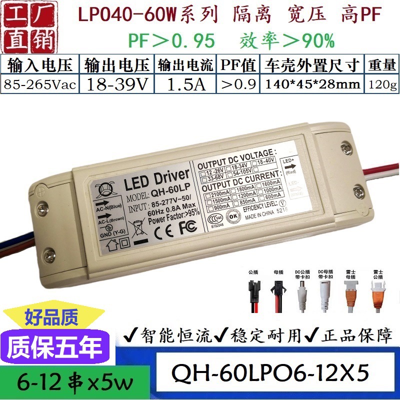 Qh奇翰高pf40w42w48w50w0.6a0.9a1.2a1.5a ledパネルライト外付け定電流電源