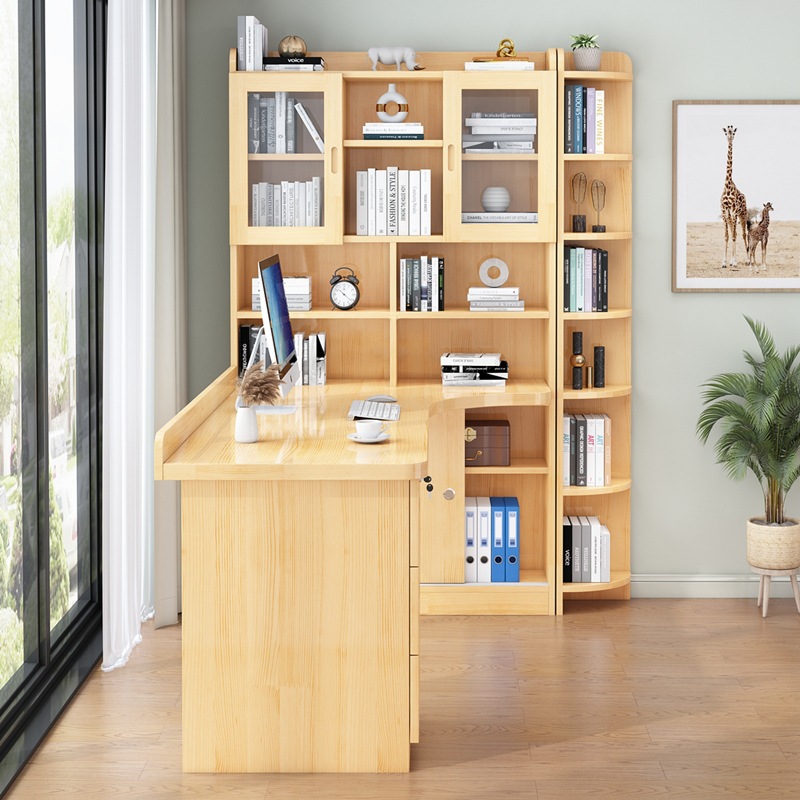 L * 実木コーナー机本棚一体組み合わせ寝室児童学習机シンプルなデスクトップ事務パソコン