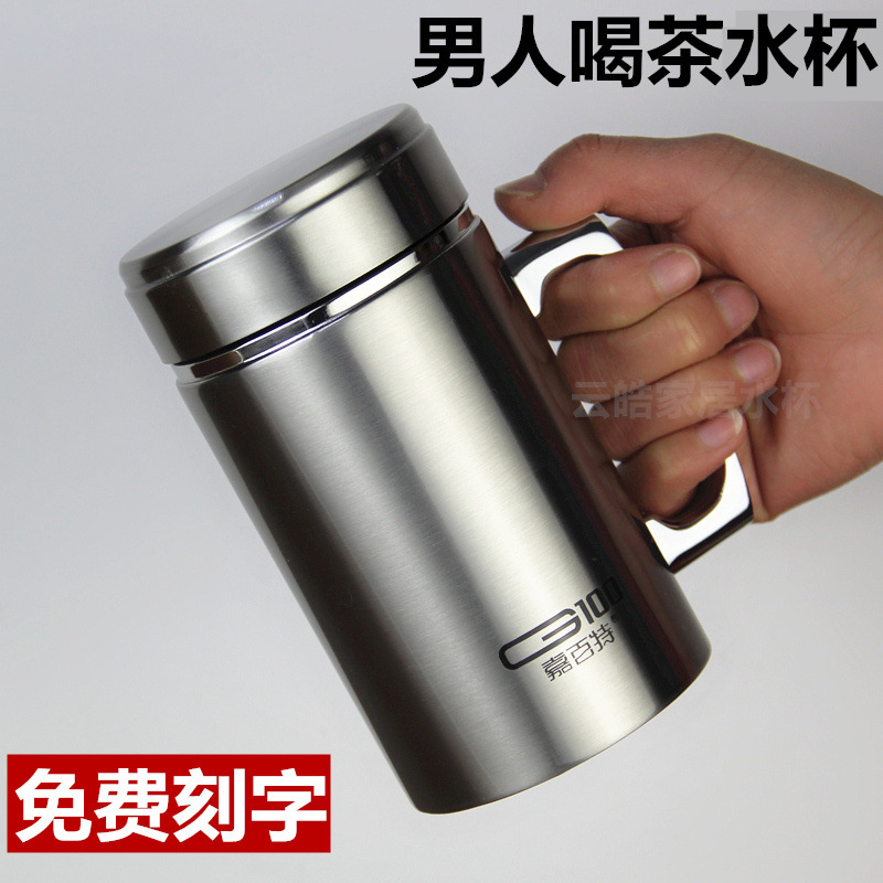 大容量ステンレス保温カップ男女オフィスビジネスお茶カップハンドル付き彫刻