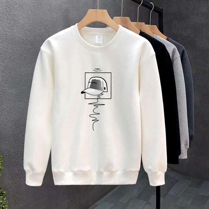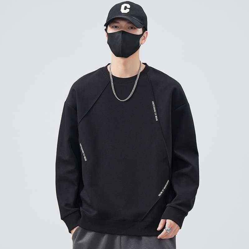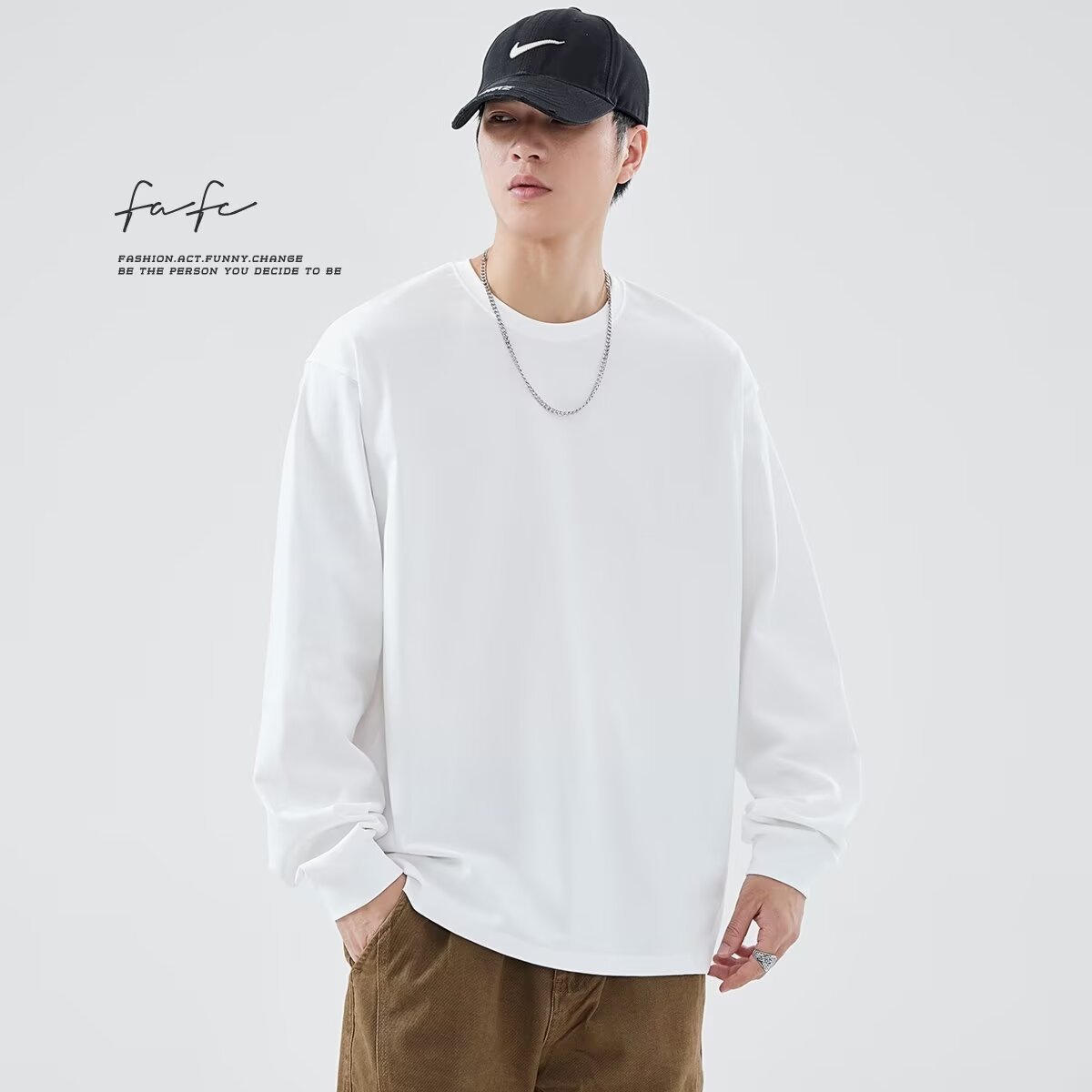 秋の重いポンドの純色の長袖のtシャツの男性の白い純綿のゆったりしている丸首の中で底のシャツの上着のパーカーの男女を掛けます。