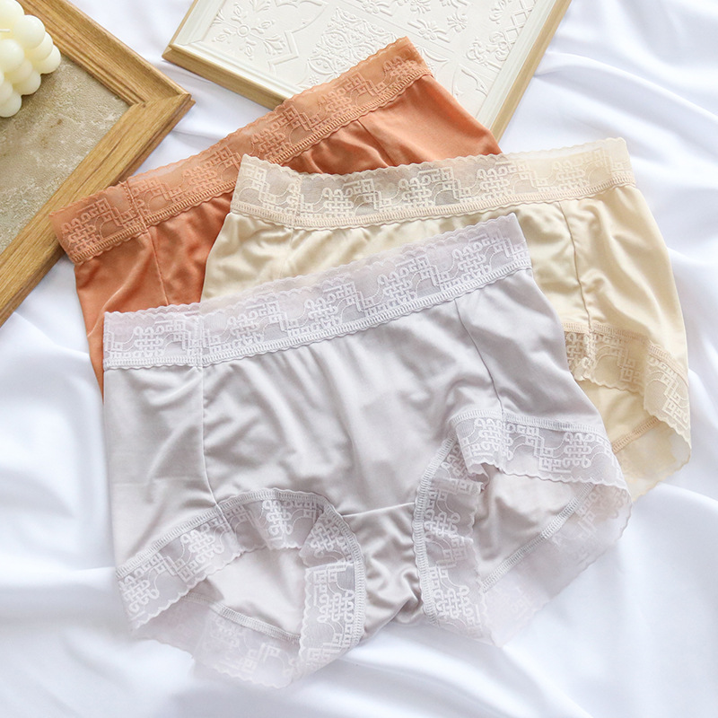 唐格の夏のシルクの下着の女性の中で腰のレースの辺の绢糸の三角のズボンのショートパンツはお尻を包んで空気を通します。
