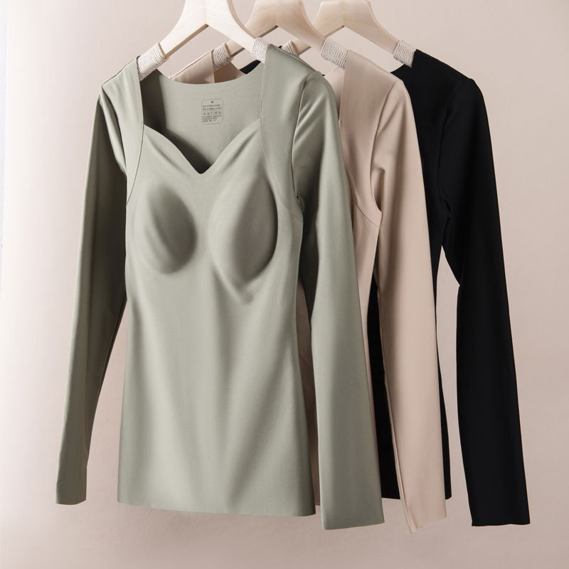 唐格秋冬保温女性ベスト绢糸カシミヤカップ一体式シームレス下着は柔らかくて薄いです。