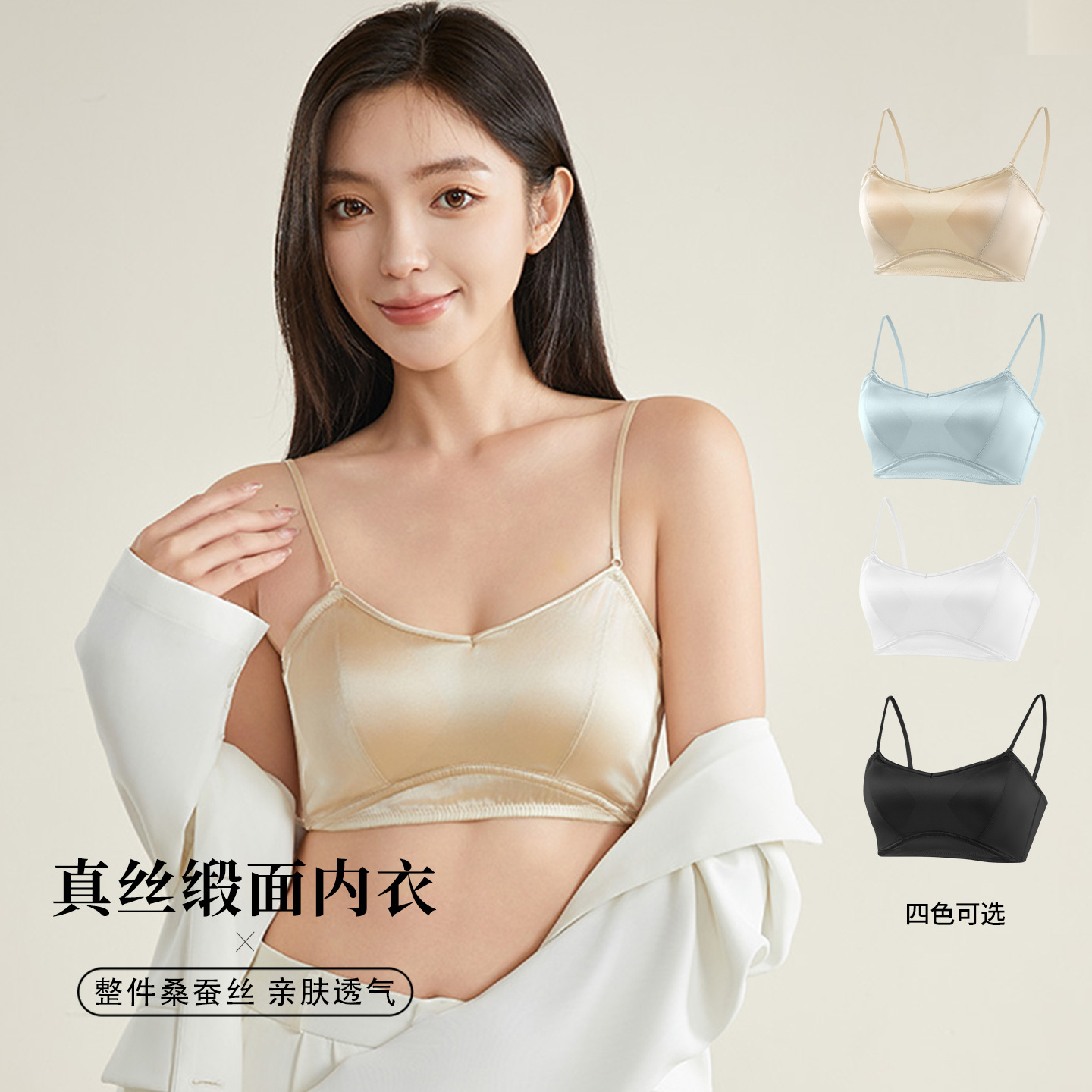 唐格シルク丸首ノースリーブサスペンダー蚕リボンカップ一体式シンプルサスペンダーペチコート