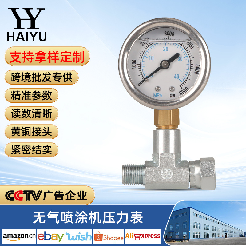 高圧無気塗装機圧力計ラテックス塗料小型塗装機汎用型圧力計三方部品