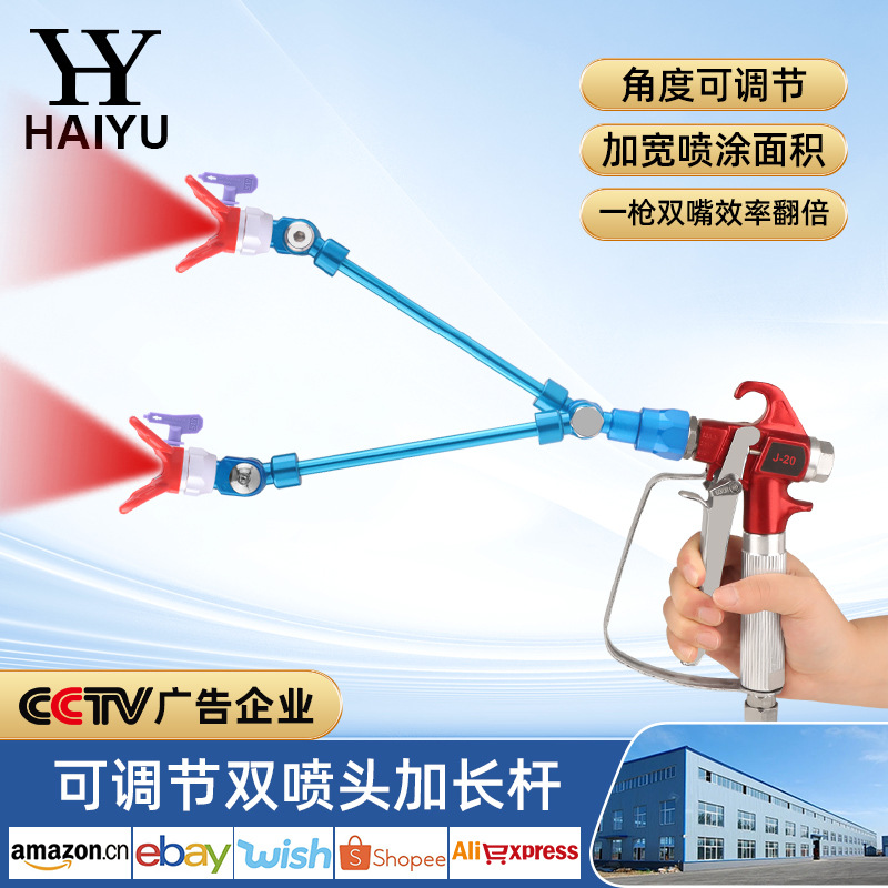 エアレス塗装機ダブルヘッド延長ロッドダブルノズルスプレーガン調節可能ダブルスプレー部品ダブルフライ塗装神器
