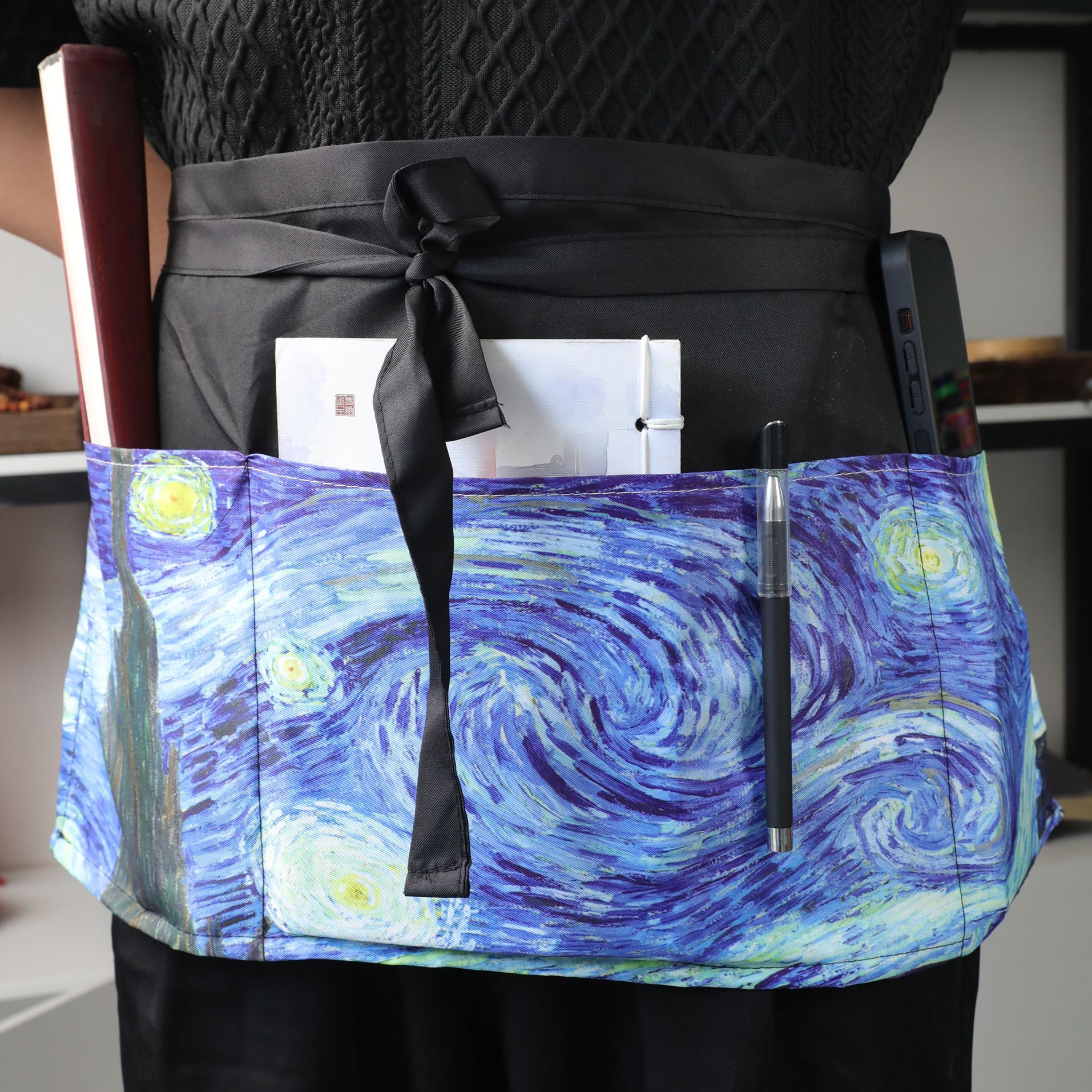 クロスボーダー熱売プリント半腰エプロンポリエステル防水防汚3つのポケットレストランカフェエプロンサービス員