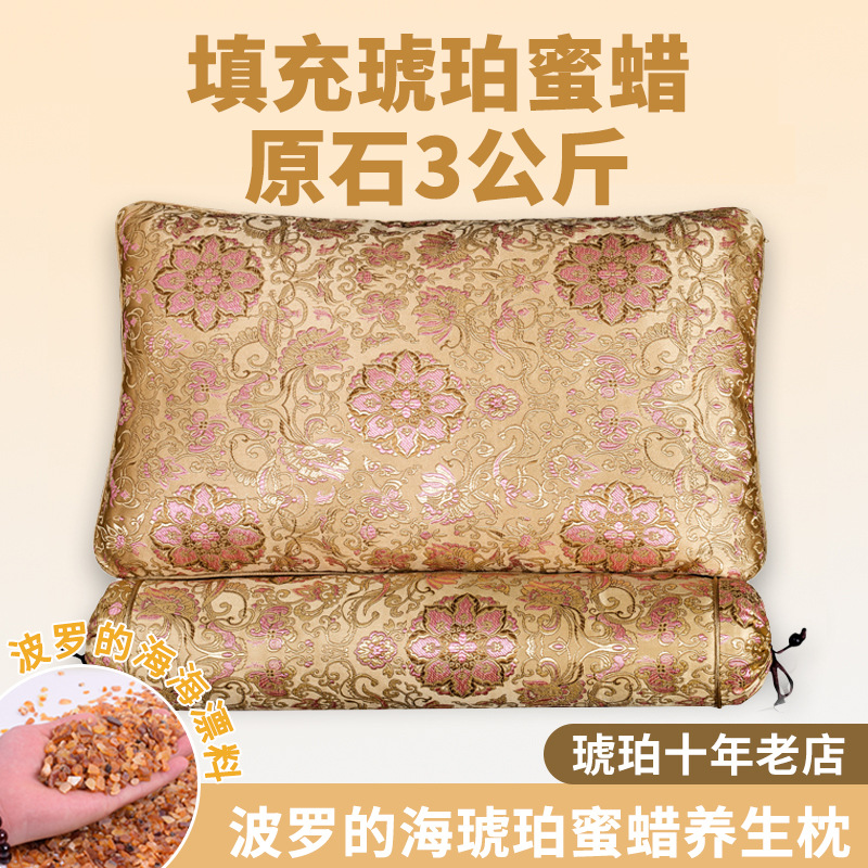 バルト海漂料原鉱天然琥珀蜜ろう養生枕安神助睡眠保護頚椎枕円筒枕