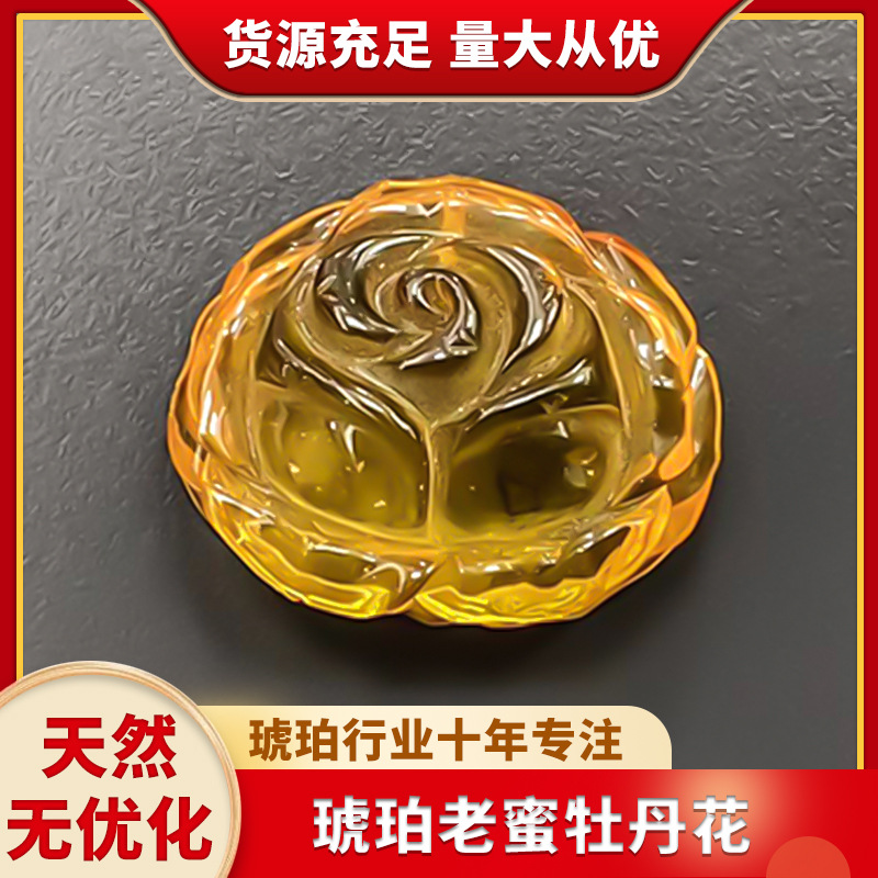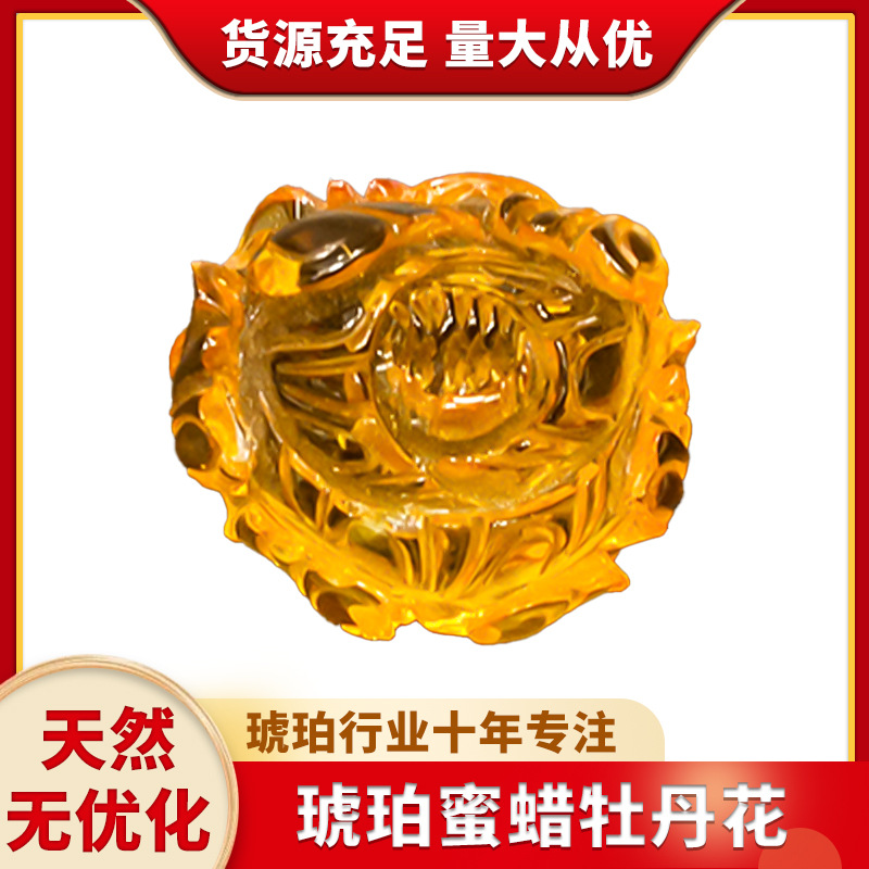 天然に最適化されていない本物の琥珀鶏油黄牡丹花彫刻品ペンダントペンダント