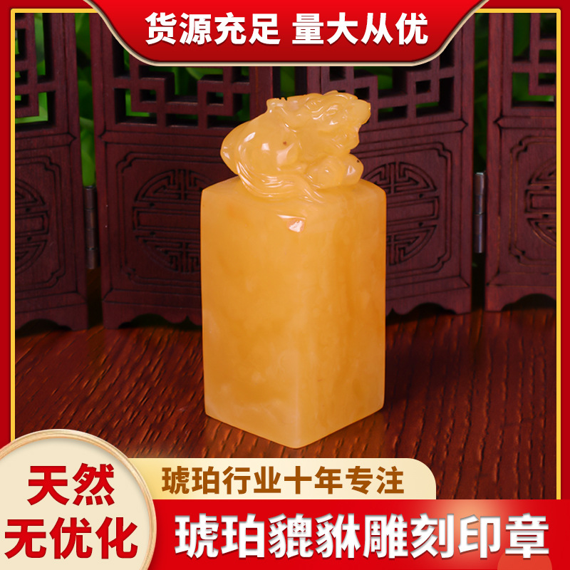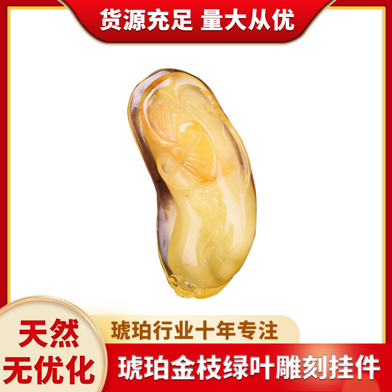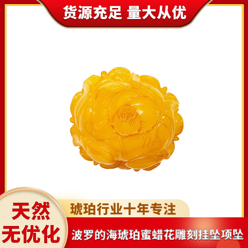 バルト海天然琥珀蜜蝋鶏油黄精工彫刻