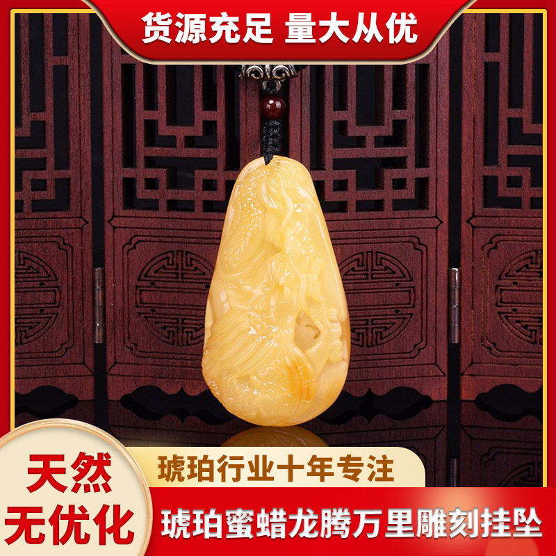 天然バルト海琥珀ミツロウ龍騰万里彫刻ペンダント民族風男女DIYペンダント