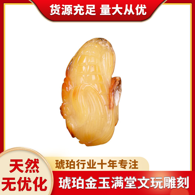 天然のバルト海の古い蜜ろう琥珀金玉満堂文は彫刻のトウモロコシを遊んで身につけて多子多福を持ちます。