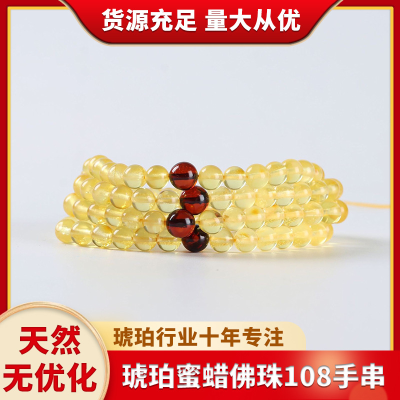 古蝋108玉珠ネックレス蜜蝋ブレスレットジュエリー女性用高級感セーターチェーン琥珀鶏油黄色文玩アクセサリー