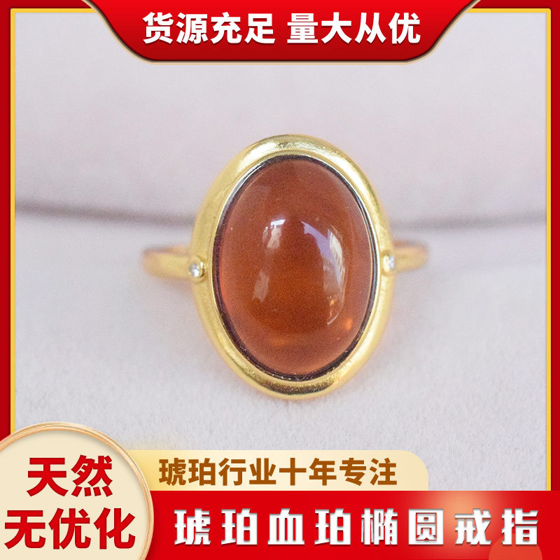 天然に最適化されていない銀琥珀血パー楕円指輪養生女性の宝飾品の個性2025年の新型