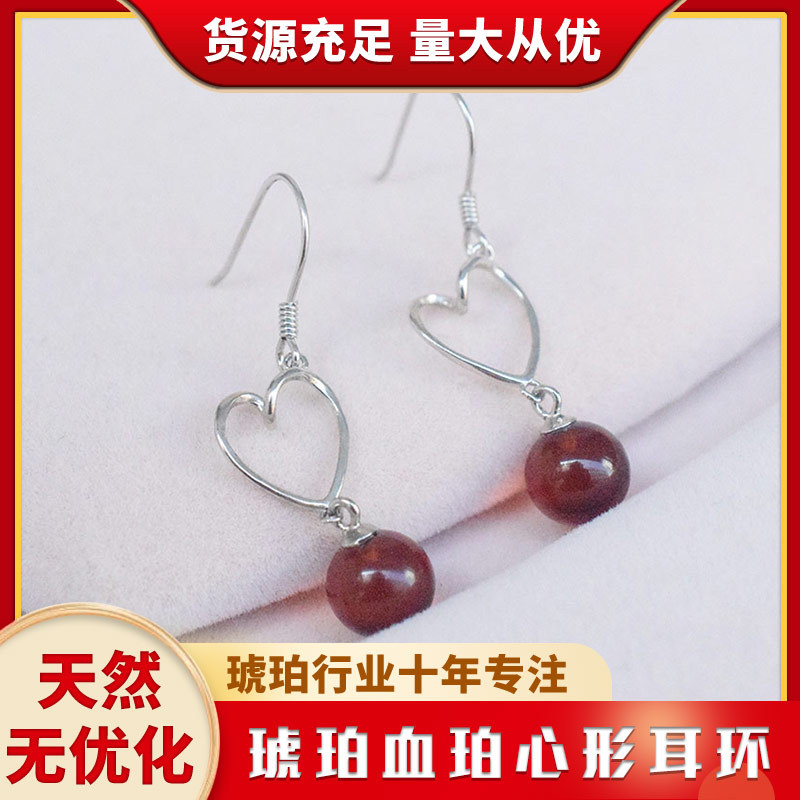 天然無最適化バルト海琥珀血パーハート型イヤリング高級オリジナル耳飾り個性デザイン装飾