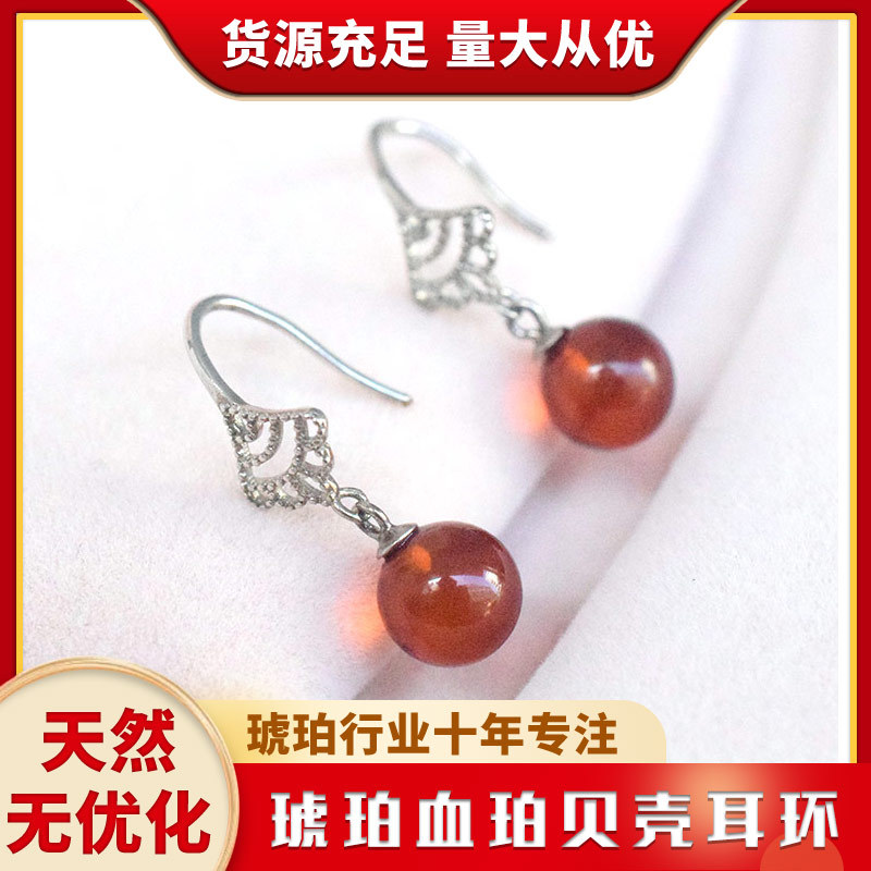 琥珀蜜蝋イヤリング、軽くて豪華で高級感のあるイヤリング、エスニックスタイルのブラッドアンバーイヤリング、天然本物、越境EC人気商品