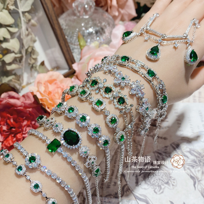 椿ハイエンド新製品気質人工エメラルド宝石ブレスレット女性フルダイヤモンド宮殿模造トルマリンブレスレット卸売