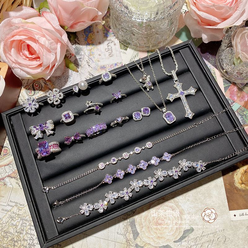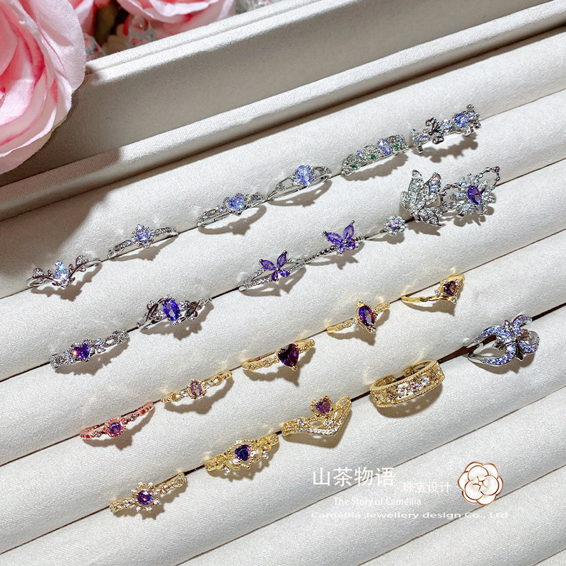 ツバキの新商品のきらきらと輝くブドウの紫のドリルのシリーズの宝石の金メッキのいっぱいのドリルの爆発の貴気の優雅で軽い豪華な指輪の女性
