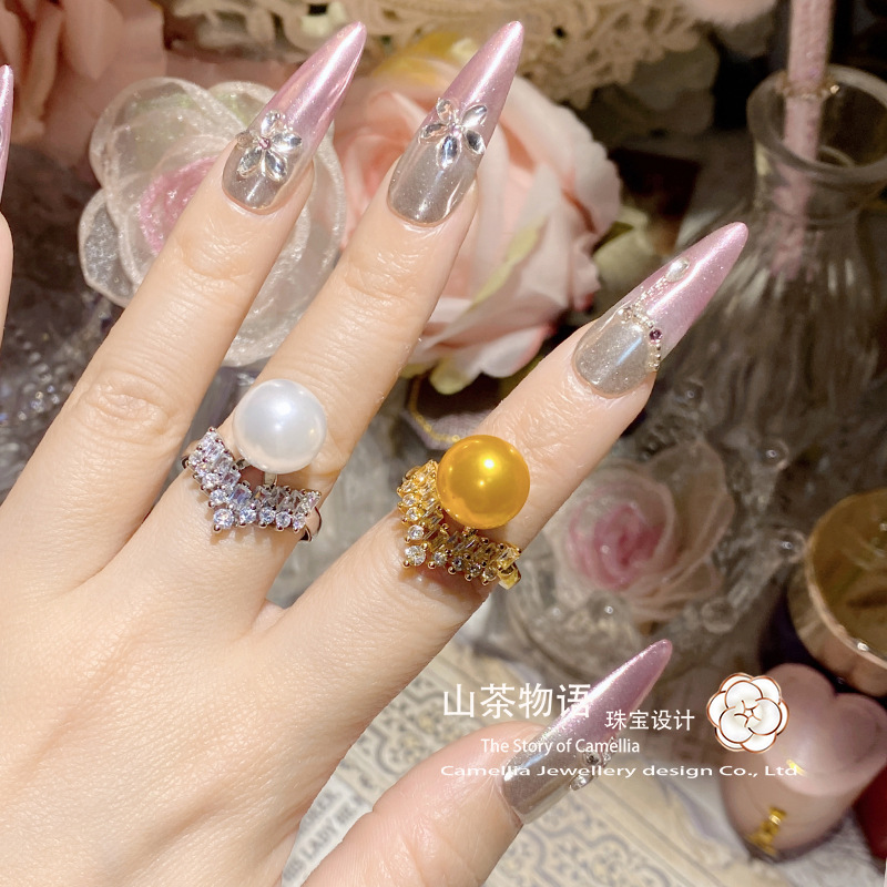 ツバキの宝石の新型のクラウンの宝石の貝の玉の指輪は18kの金のフランス式の貴重な気をめっきしてオーベルの母の真珠の指輪をはめ込みます。