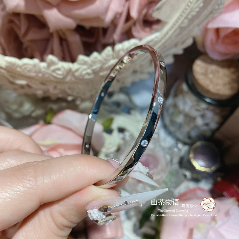 ツバキの韓国版のファッションは満天の星を重ねてカギのブレスレットをつけます。