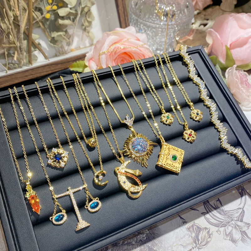 ツバキの越境する新型の軽豪華な気質の黄金色のネックレスはもとは復古の黄金の本の太陽の月の蛇のペンダントを設けます。