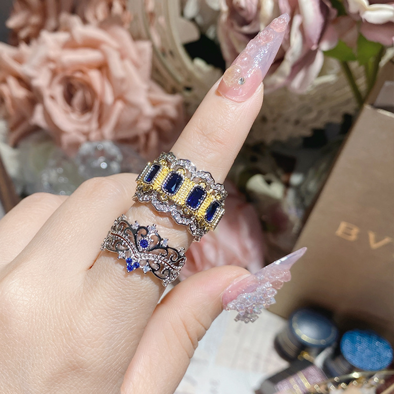 山茶中世風レース蜂の巣デザイン宝石指輪アンティーク感メッキ18k金クラウン重ね指輪