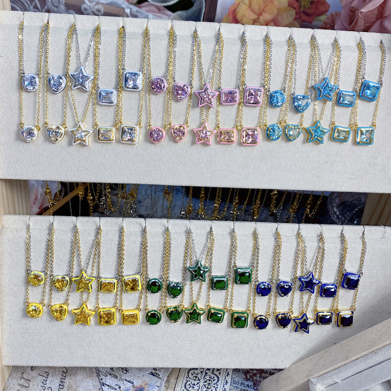 ツバキの欧米の方のあめの設計の彩色は日常に合わせてイヤリングの金メッキのゴムのエナメルのマカロンの色の星のネックレスを配合します。