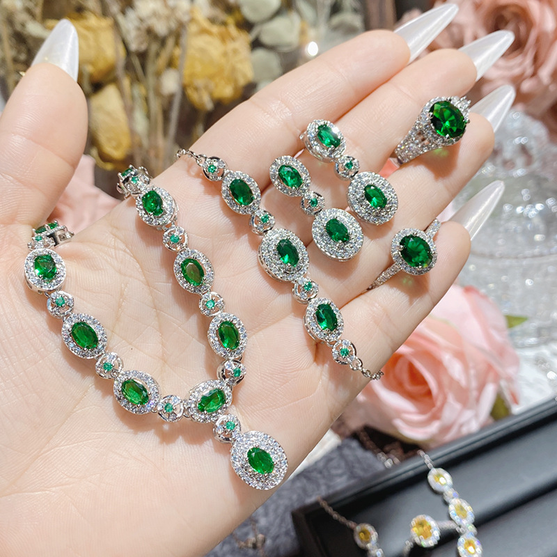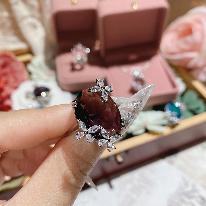 山茶ファッション軽豪華ルビー花嫁ジュエリーセットメッキ18k金満ドリル彩宝花指輪耳飾り女