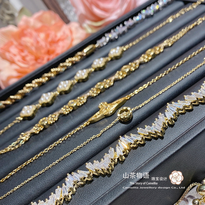 ツバキ宮廷レトロ高定ジュエリーセット女性メッキ18k金微装彩宝小衆ブレスレット高級感耳飾り