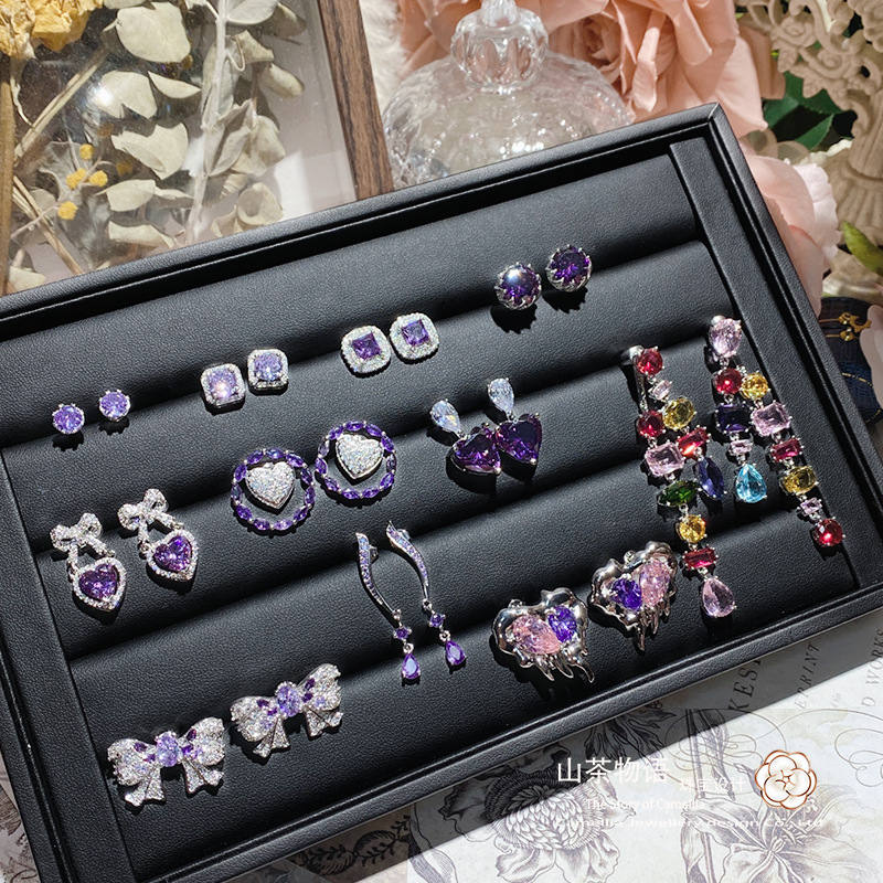 ツバキのきらきらと輝く金メッキのブドウの紫のドリルの指輪のイヤリングのネックレスのいっぱいのドリルの爆発の貴気の優雅で軽い豪華なスーツ