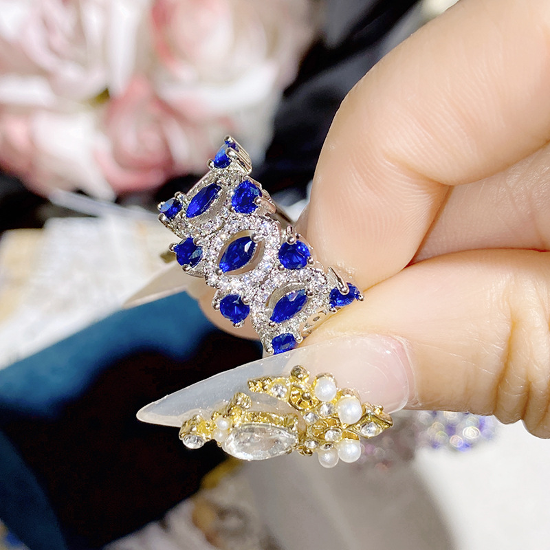 ツバキのきらきら輝くタンサンのサファイアの多い切断面の活口の指輪の満天の星の太いリングのダイヤモンドのバラの粉の宝の指輪の女性