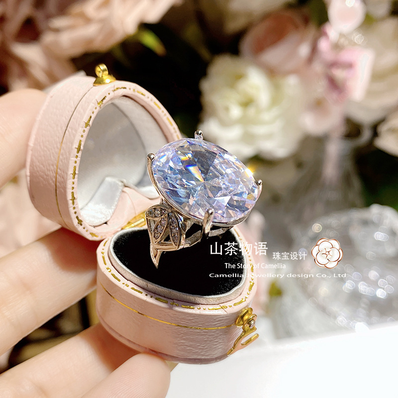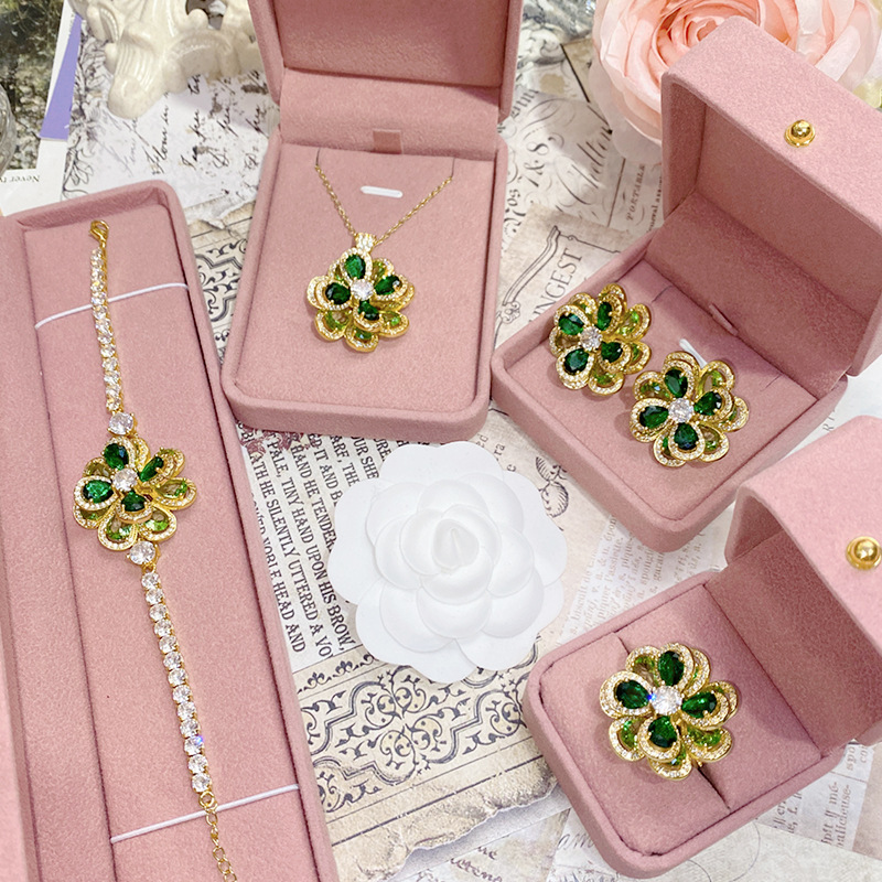 ツバキの中国式の豪華な巨大な祖先と緑の人間の富貴な花のセットはダイヤモンドの優雅なファッションの指輪をいっぱいにします。
