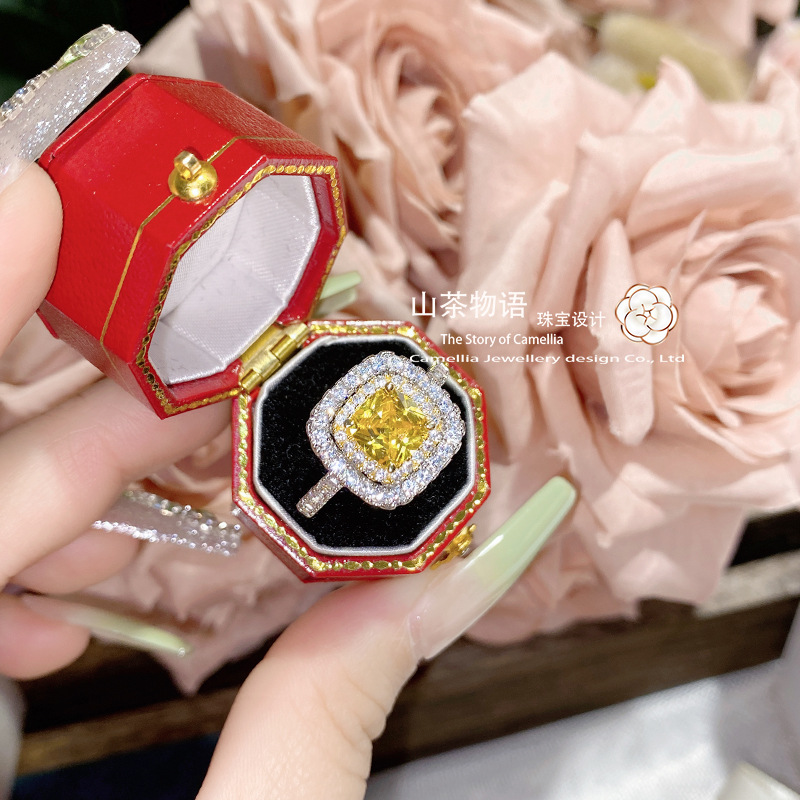ツバキの新型の豪華な黄色の水晶の王女の方のドリルの開口戒pt950は莫桑のドリルの四角形の群の指輪をまねます。