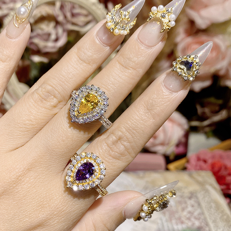 ツバキの越境する経典の爆発金の豪華な大気の色彩の宝の指輪の金メッキのファッション的な貴気の紫水晶のきらきらと輝く指輪