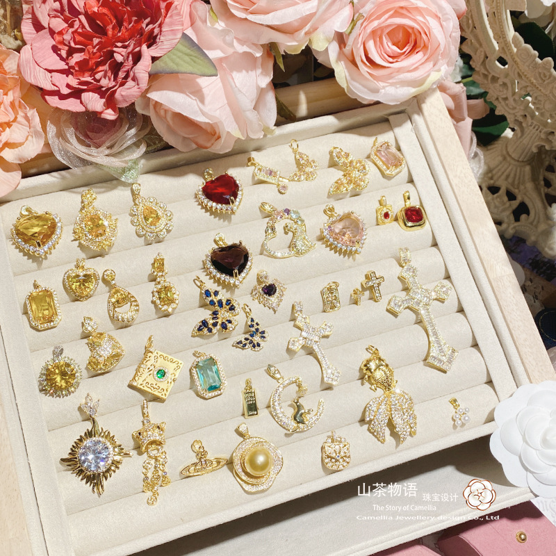 山茶欧米重工高定ジュエリー超大型ペンダント女性メッキ18k金輝くジルコニウムドリル復古贅沢ペンダント