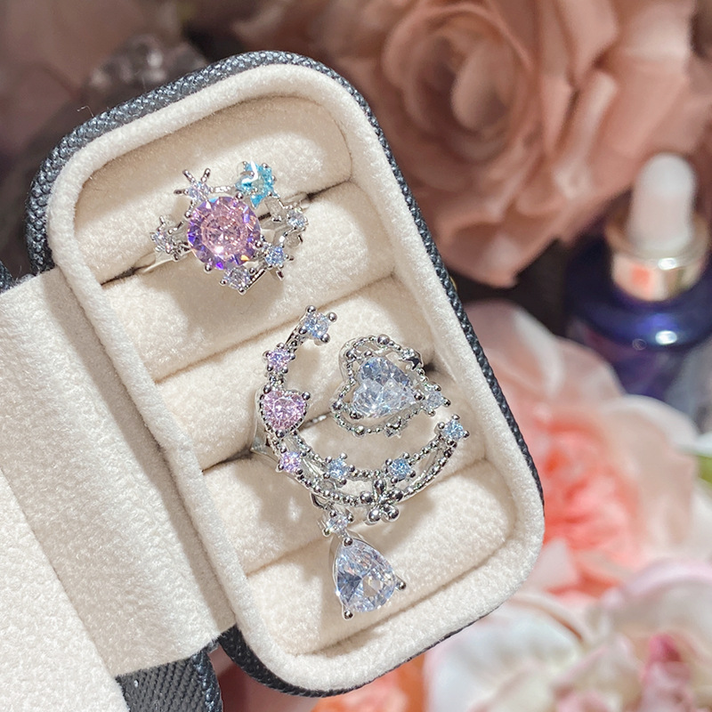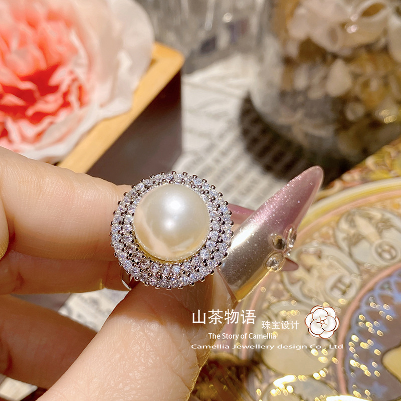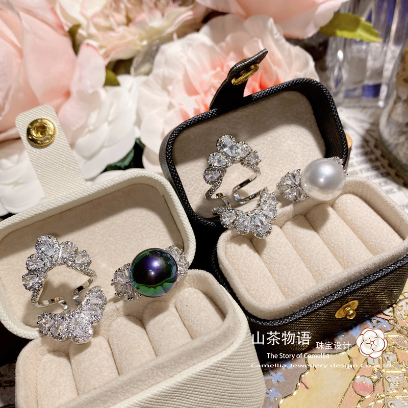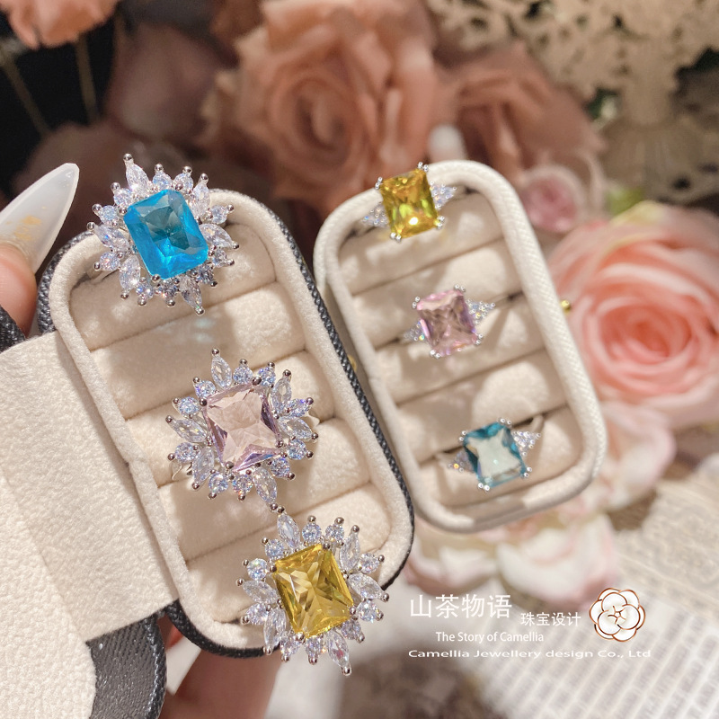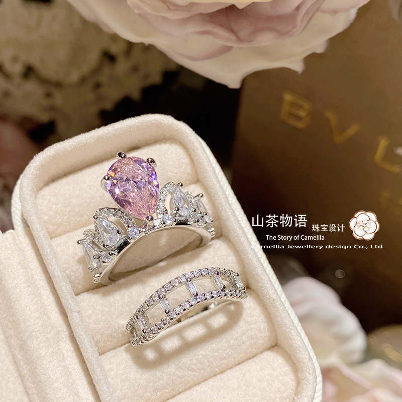 ツバキの宝石の新型の高炭素のダイヤモンドの王冠の組み合わせの指輪の女性の金メッキの気質の豪華な百合の日常は口を開けます。