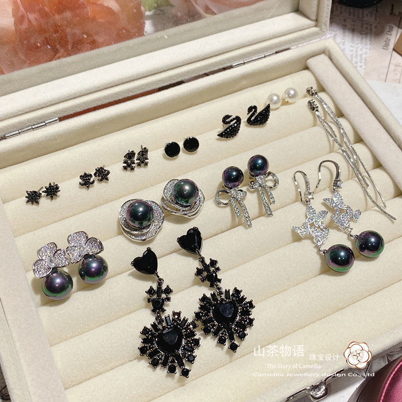 ツバキの軽い豪華な小衆の暗い風はダイヤモンドの愛のイヤリングを入れて黒金のファッションをめっきします。