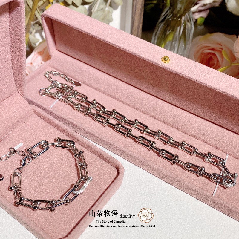 カメリアヨーロッパとアメリカのチェーンショート馬蹄ブレスレットレディースゴールドメッキライト高級トレンドヘビーデューティーヒップホップ多用途カップルセット