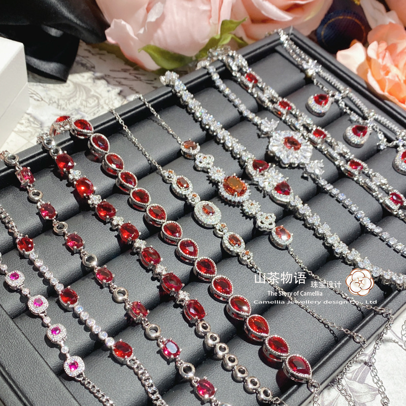 ツバキの貴重な気の精巧なザクロのルビーのブレスレットの骨董感は18kの金をめっきして豪華な宴会の水滴のブレスレットを満たします。