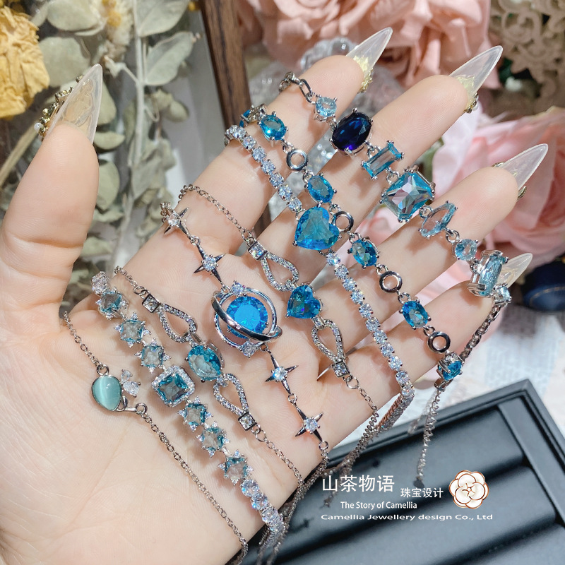 ツバキはもともとベニスの水藍の不規則な宝石のブレスレットを設けて18kの軽くて豪華な風の高級感の海藍宝のブレスレットをめっきします。