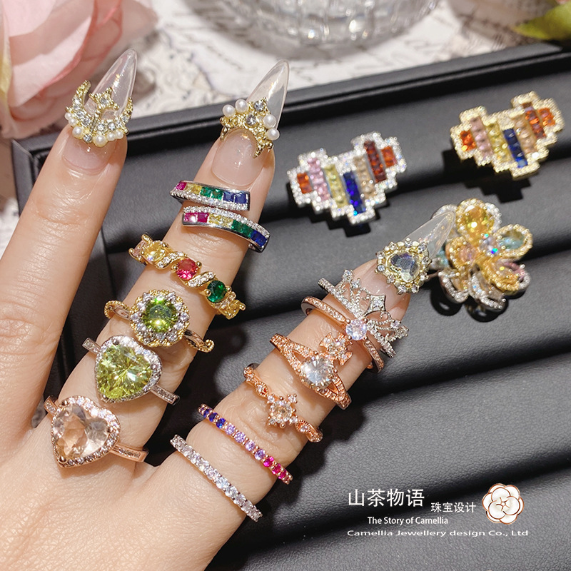 ツバキの新商品の宮廷は虹の碧璽の彩宝のシリーズの指輪をまねて金メッキします。